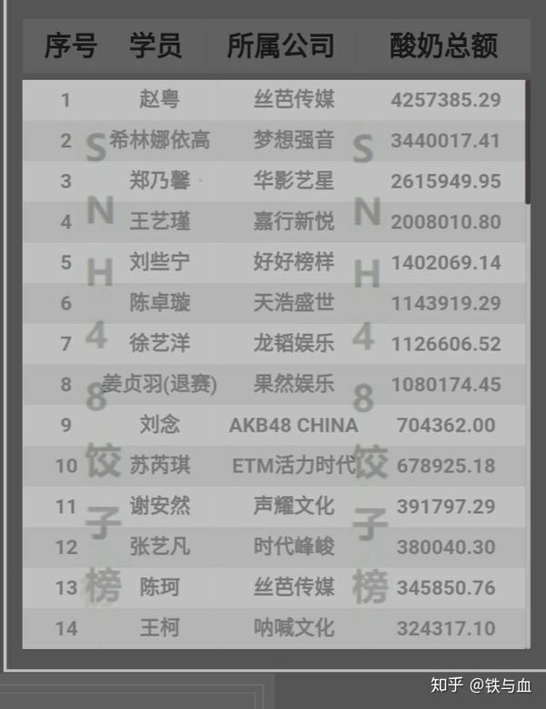 目前的饺子榜,心疼希林,nene和苏芮琪。