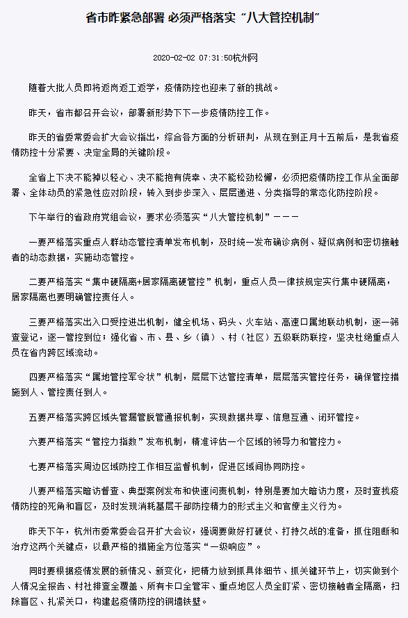 文中所说的《杭州市新型冠状病毒感染的肺炎疫情防控工作领导小组关于印发八大机制的通知》我找了一圈也没找到,有知道的同学可以说一下。