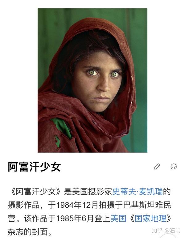 阿富汗选用了登入过美国国家地理封面的《阿富汗少女》;