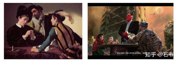 一个是卡拉瓦乔的作弊者(主角及构图);